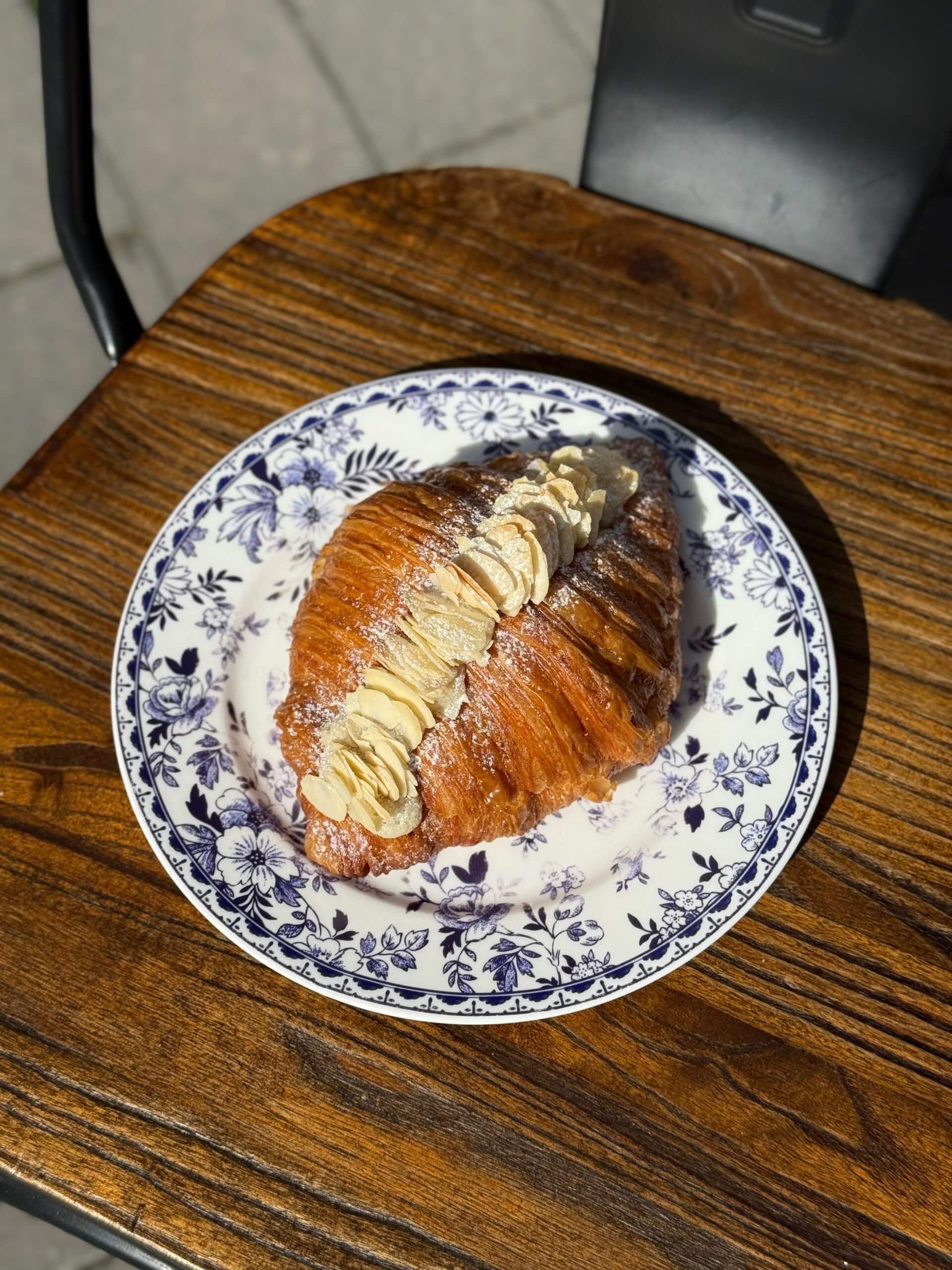 Хрумкий та ніжний, бо в його основі французький Creme D’amandes or Frangipane або простими словами — франджипан. Це легкий крем на основі великої кількості мигдалю. Начинки та тісто для всіх наших круасанів ми виготовляємо самі, не використовуємо у роботі готові продукти чи пасти. Можливо, саме тому наші круасани такі смачні та несхожі на інші.
